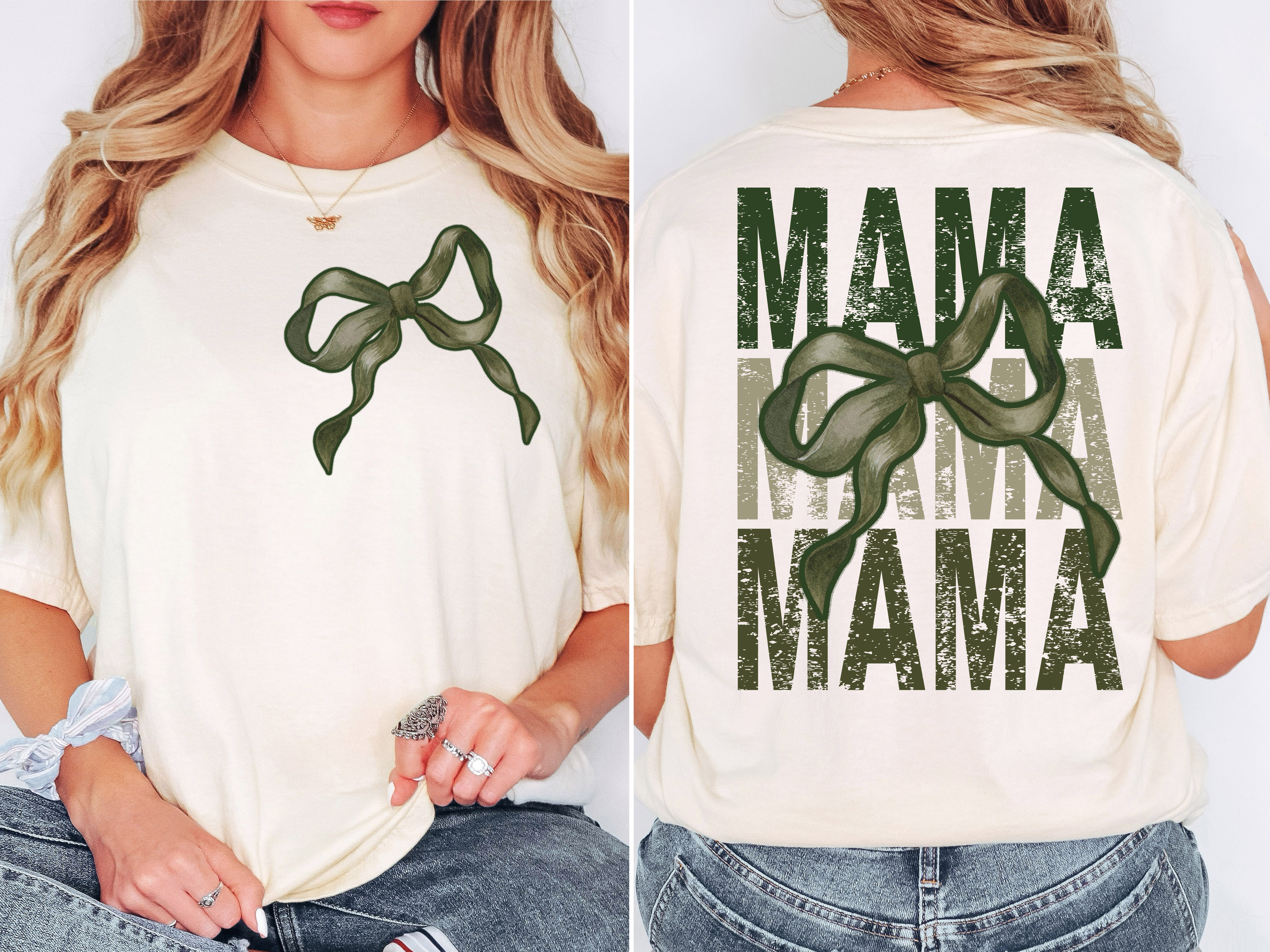 Mama Repeat Camo Green Bow DIgital Download